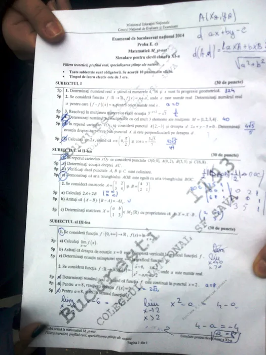 BACALAUREAT 2014. Subiecte date azi la MATEMATICĂ, simulare clasa a XII-a – Toate profilurile