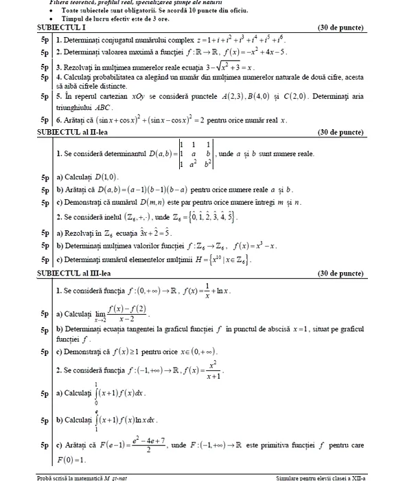 BACALAUREAT 2014. Subiecte date azi la MATEMATICĂ, simulare clasa a XII-a – Toate profilurile