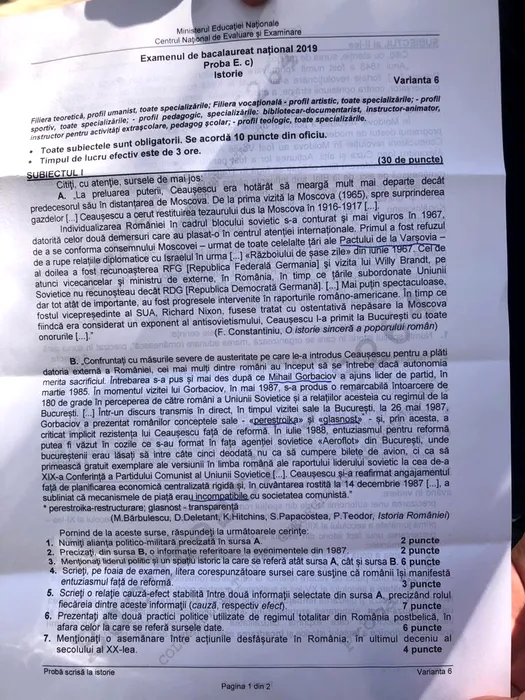 Bacalaureat 2019 la Istorie și Matematică. Subiectele la Istorie: Spațiul românesc în perioada Evului Mediu la al treilea punct. Rezolvarea subiectelor la Matematică