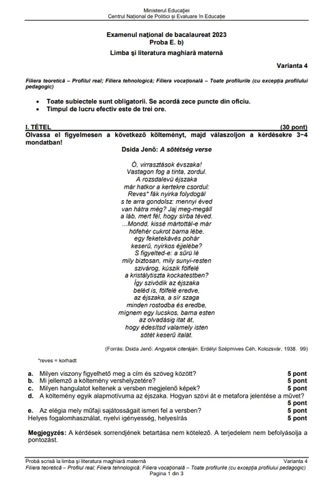 BACALAUREAT 2024 | Ce a picat la limba și literatura maternă. Subiectul care a dat bătăi de cap la limba maghiară
