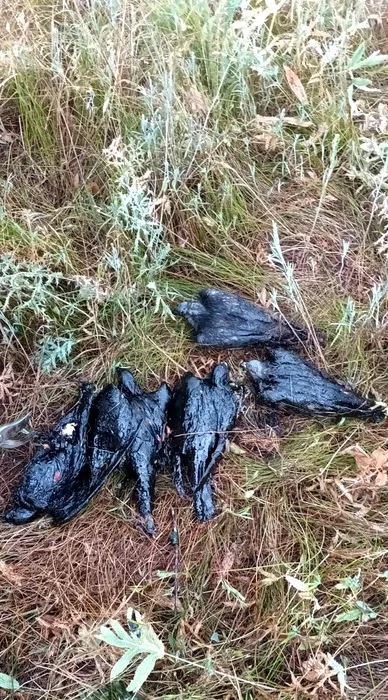 Imaginile terifiante cu porumbeii de curse morți au fost surprinse la marginea orașului Ploiești, unde se află o baltă imensă de păcură (foto: Luca Pigeons-transport/Valentin Tulbiță)