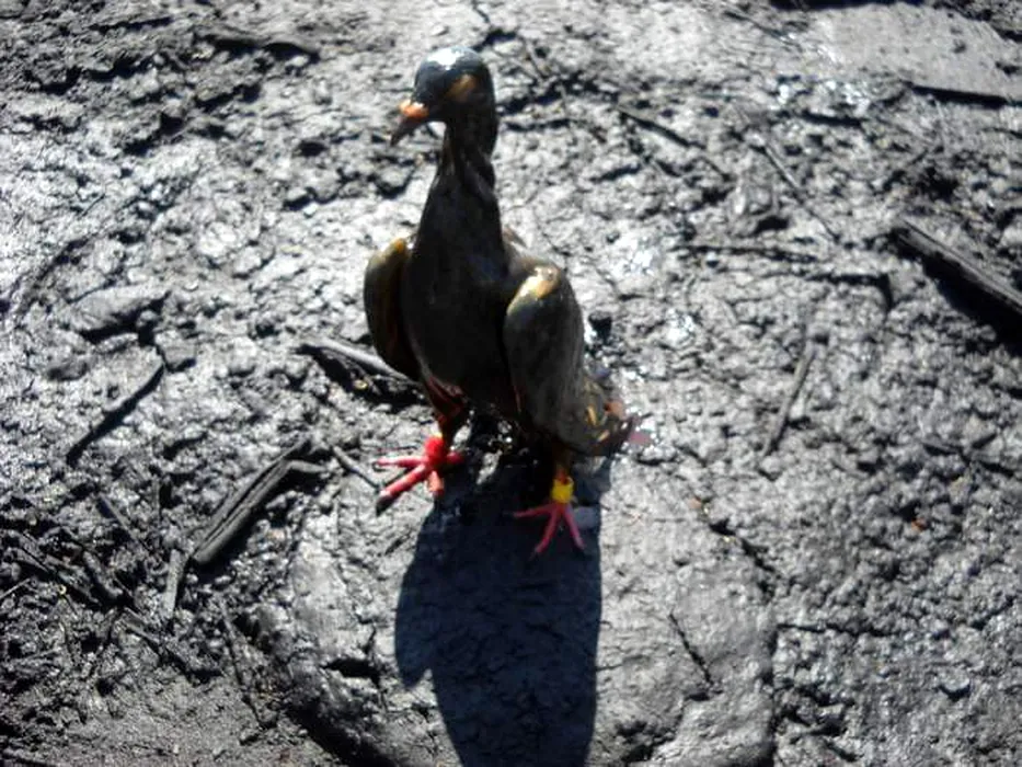 GALERIE FOTO: ”BALTA MORȚII” de lângă Ploiești. Imagini șocante cu porumbei negri de păcură, fără suflare sau în agonie, după ce ies din reziduurile petroliere