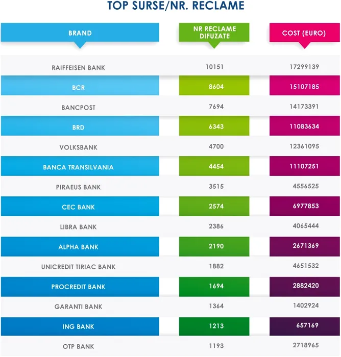 GALERIE FOTO: Băncile și-au făcut reclamă de aproape 112 milioane de euro în 2014. Topul bugetelor de publicitate