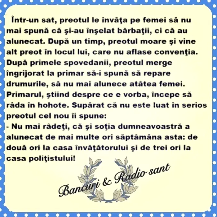 BANCUL ZILEI | Preotul și nevestele adulterine