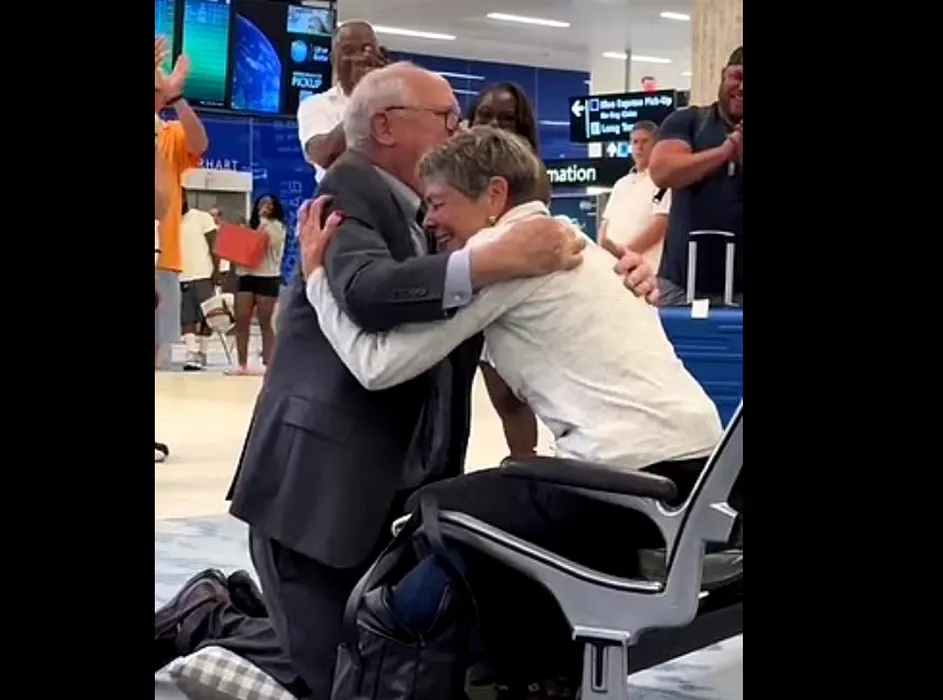 După 60 de ani, un bărbat şi-a cerut în căsătorie iubita din liceu, pe aeroport / Sursa foto: captură video TikTok