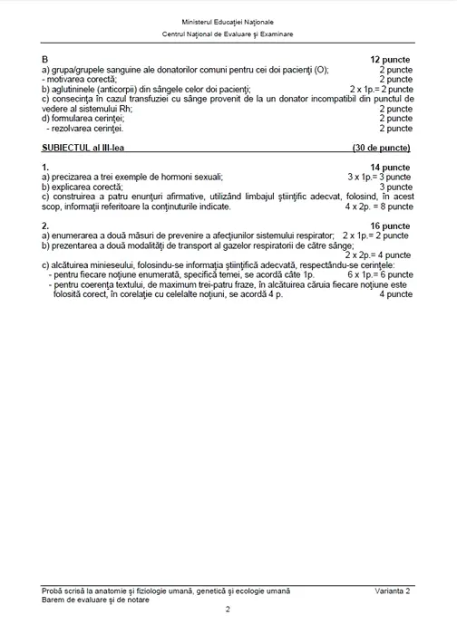 BAREM BAC 2013 BIOLOGIE. Care este punctajul pentru ANATOMIE la BAC 2013