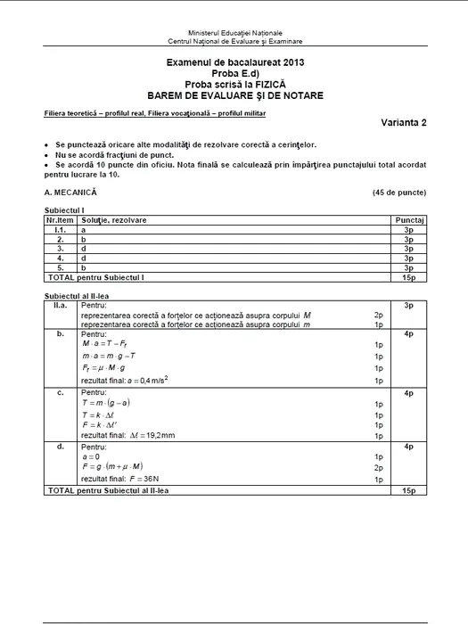 BAREM BAC 2013 FIZICĂ. Baremul de corectare a subiectelor la FIZICĂ la BACALAUREAT 2013