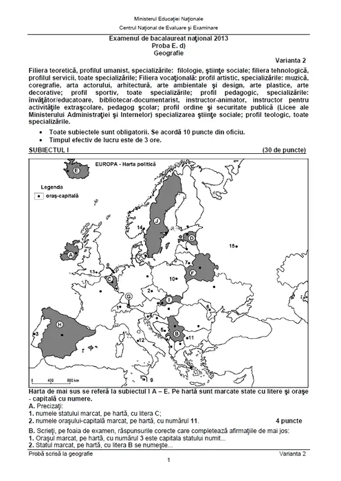 GALERIE FOTO: BAREM BAC 2013 GEOGRAFIE. Punctajul pentru subiectele la GEOGRAFIE BACALAUREAT 2013 – EDU.RO