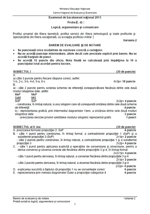 BAREM BAC 2013 LOGICĂ. Ce subiecte au avut de rezolvat liceeni care au ales logica la bacalaureat 2013