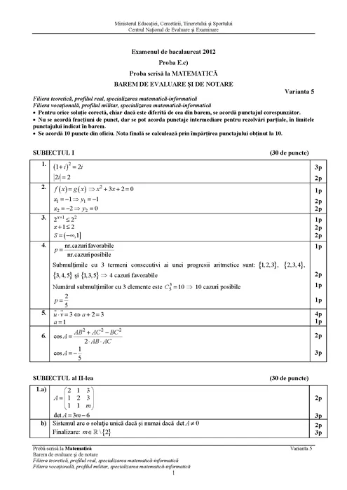 BAREM BAC MATEMATICĂ 2012 M1 ȘI M2