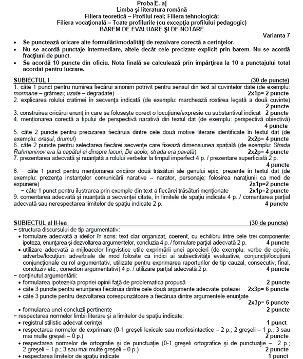 BAREM BACALAUREAT 2013 ROMÂNĂ SCRIS – Profil REAL, TEHNOLOGIC și VOCAȚIONAL. Cum sunt punctați elevii la BAC 2013