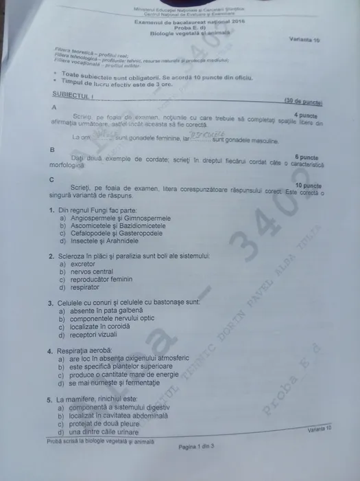 Barem Bacalaureat 2016 Biologie. Gândul publică baremul pentru subiectele la biologie la examenul de Bac 2016