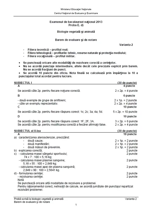 BAREM BIOLOGIE BAC 2013. Cum arată BAREMUL la BIOLOGIE de la BACALAUREAT 2013