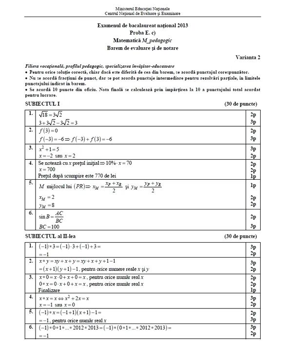 BAREM MATEMATICĂ BAC 2013 – profil PEDAGOGIC