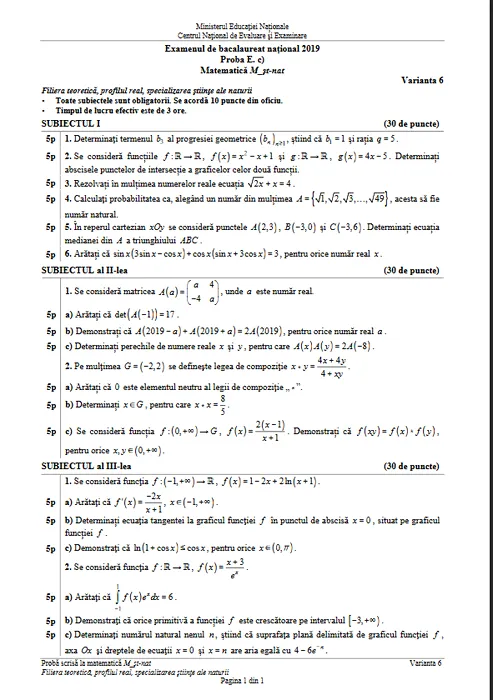BAREM Matematică Bacalaureat 2020. Cum se rezolvau, de fapt, problemele și exercițiile pentru nota 10