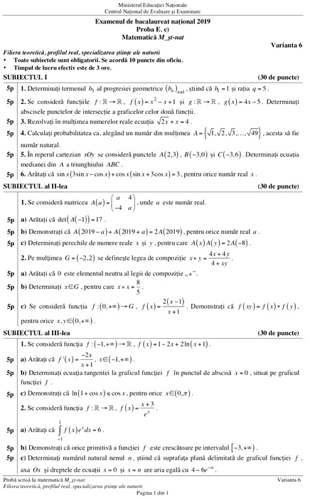 BAREM Matematică Bacalaureat 2020. Cum se rezolvau, de fapt, problemele și exercițiile pentru nota 10