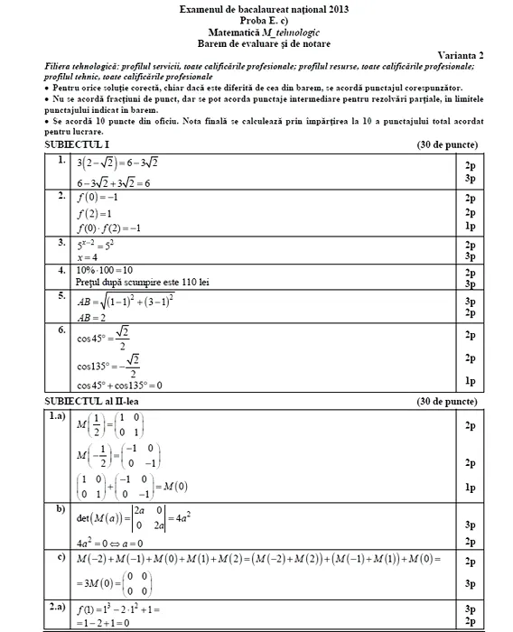 BAREM MATEMATICĂ la BAC 2013. Ce note primesc elevii de la TEHNOLOGIC