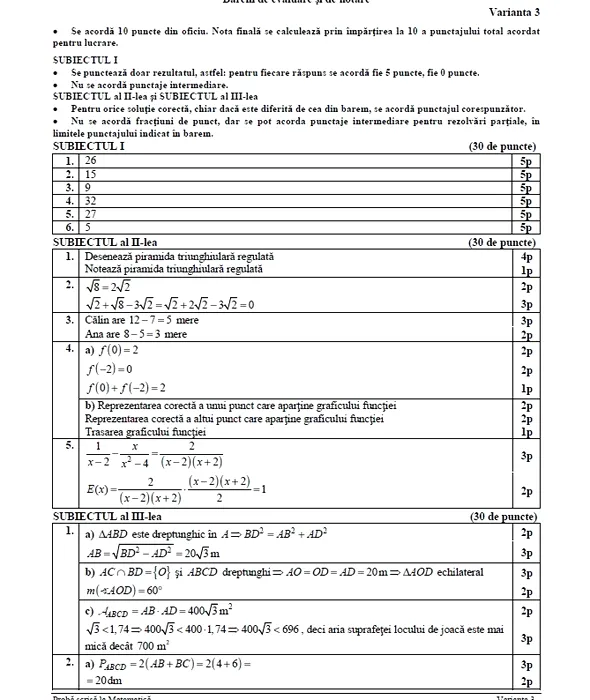 BAREM MATEMATICĂ la EVALUARE NAȚIONALĂ 2013. Cum se punctează subiectele date astăzi la MATEMATICĂ