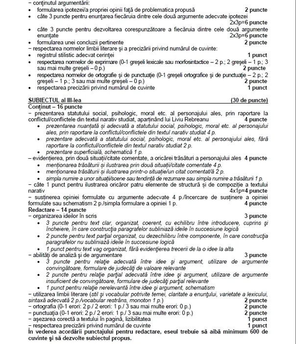 BAREM ROMÂNĂ BAC 2014. Baremul la simulare BACALAUREAT 2014 – clasa a XII-a