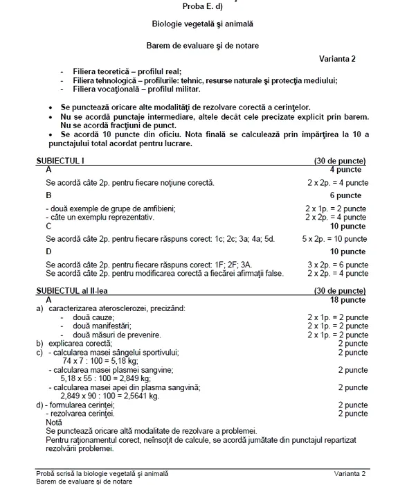 BAREM SUBIECTE BAC 2013 BIOLOGIE. Cum sunt punctate subiectele la Biologie