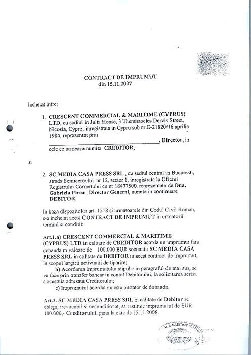 Băsescu scoate contractul de împrumut de la Crescent semnat de Gabriela Firea