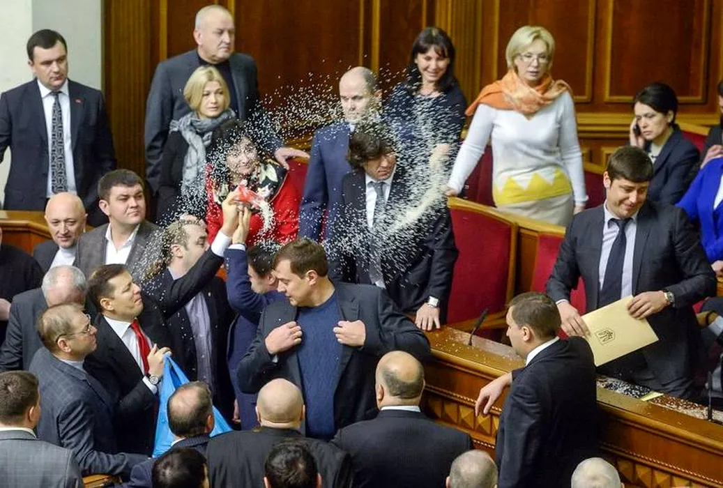 BĂTAIE în Parlamentul ucrainean, după adoptarea legii bugetului. Doi deputați au fost răniți. FOTO+VIDEO