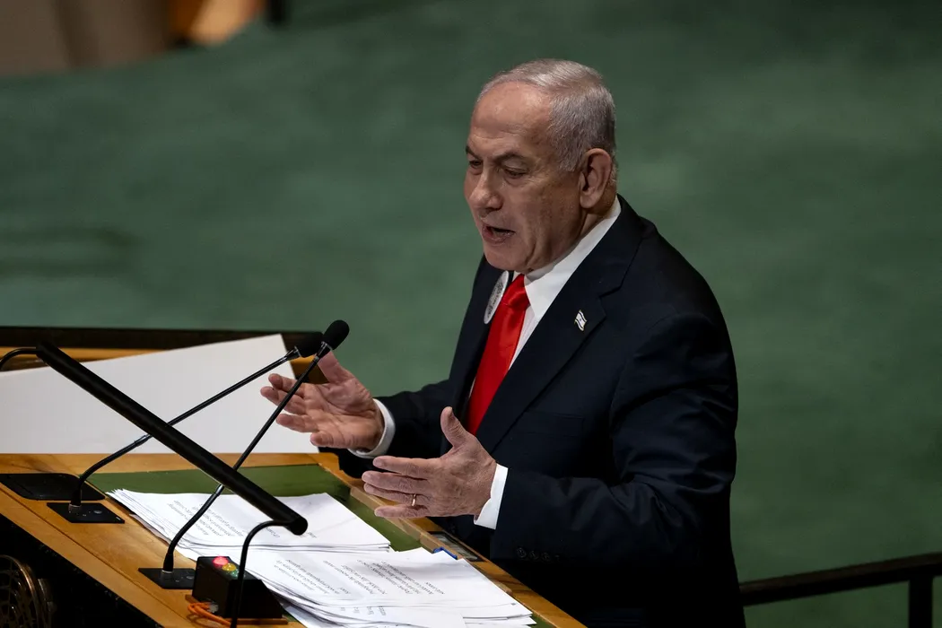 Benjamin Netanyahu a purtat o insignă specială în timpul discursului de la Adunarea Generală a ONU. Ce era inscripționat pe aceasta