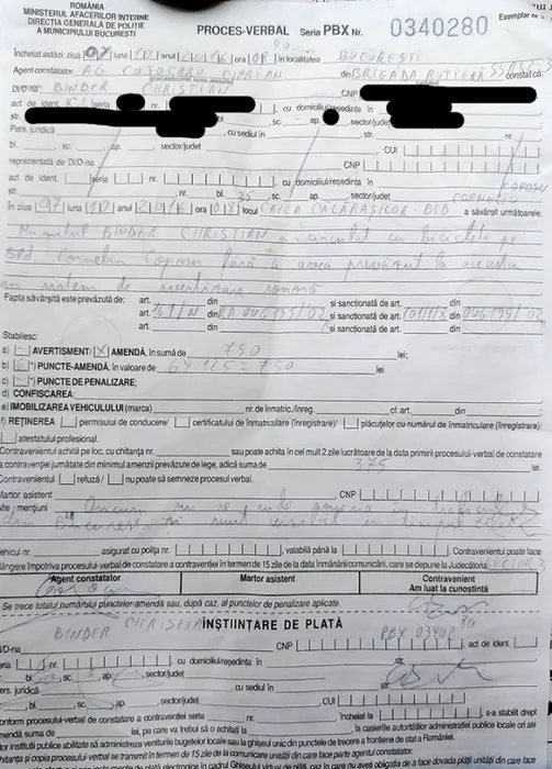 Biciclist bucureștean, amendat cu 750 lei pentru că nu avea claxon