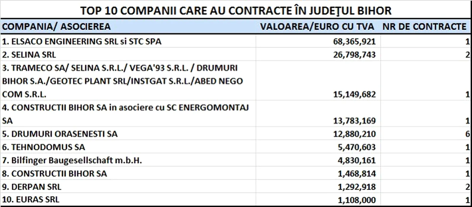 BIHOR. Unde au mers banii publici în 2014. Topul firmelor care au contracte locale cu statul
