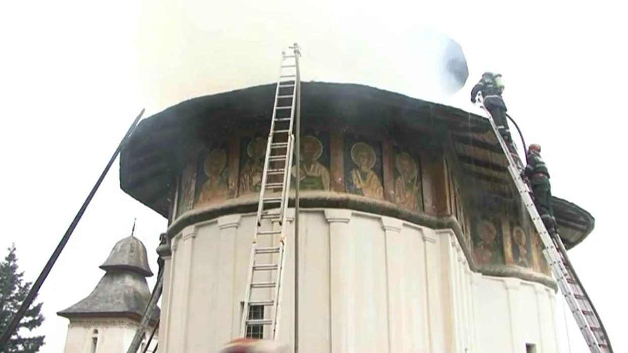 Biserica din Valea Danului a luat foc. Șase echipaje de pompieri intervin