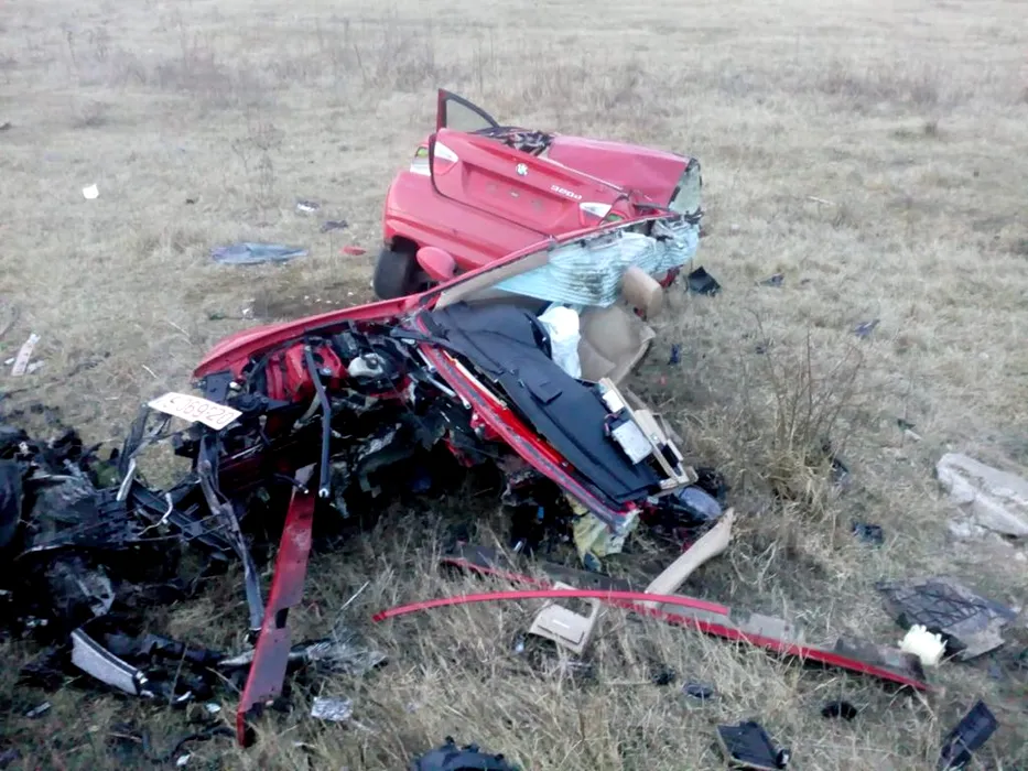 BMW RUPT ÎN DOUĂ. Șoferul a scăpat ca prin minune și a păzit epava mașinii, de frică să nu-i fie furată