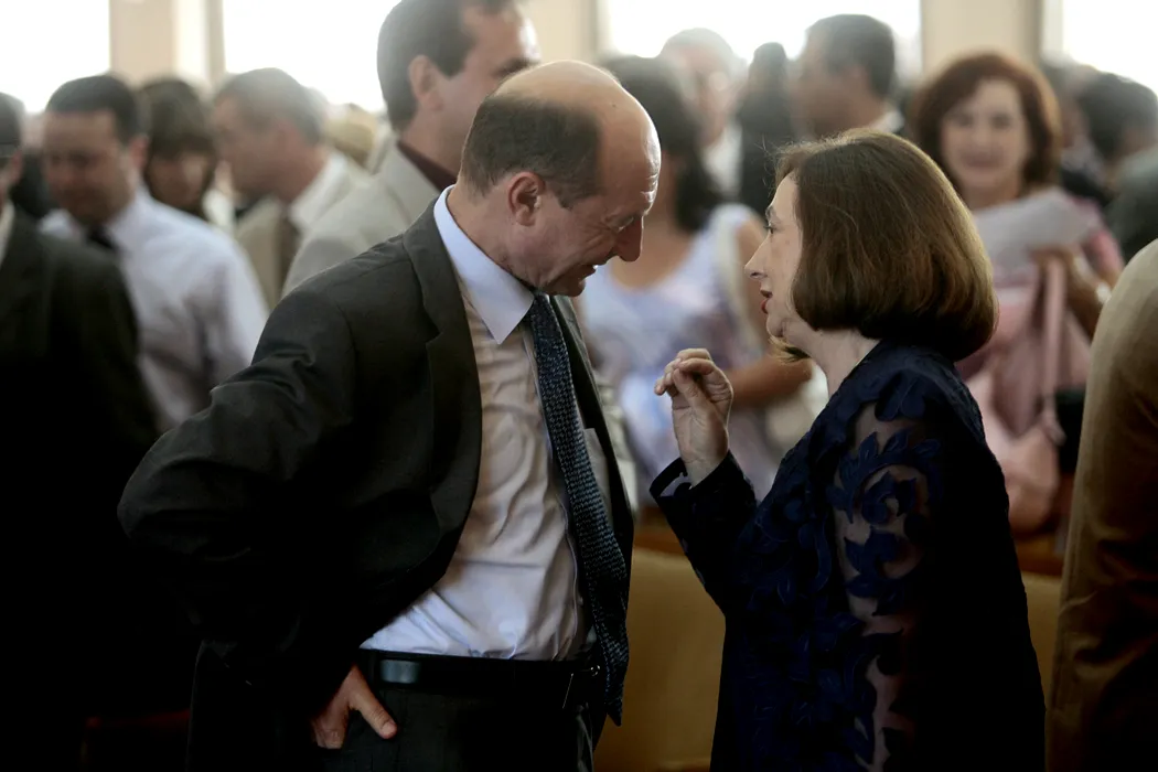 Fostul ministru al Justitiei, Rodica Stanoiu (centru) discuta cu presedintele Traian Basescu duminica, 9 iulie 2006, de Ziua Justitiei, organizata la Palatul Snagov. Increderea populatiei in Justitie este inca scazuta, a apreciat, in cadrul ceremoniei de Ziua Justitiei, ministrul Monica Macovei, care a adaugat ca va continua sa fie critica atit timp cit aceasta situatie se va mentie. ANDREI PUNGOVSCHI / MEDIAFAX FOTO