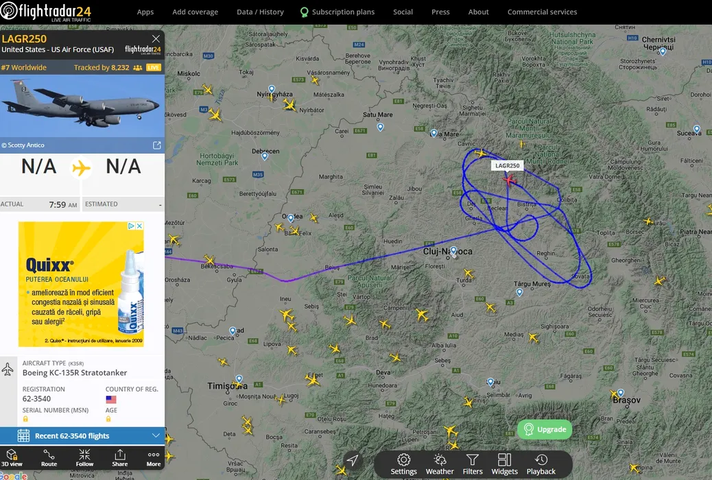 Bombardierele americane survolează România. Le poți vedea pe Flightradar în timp real