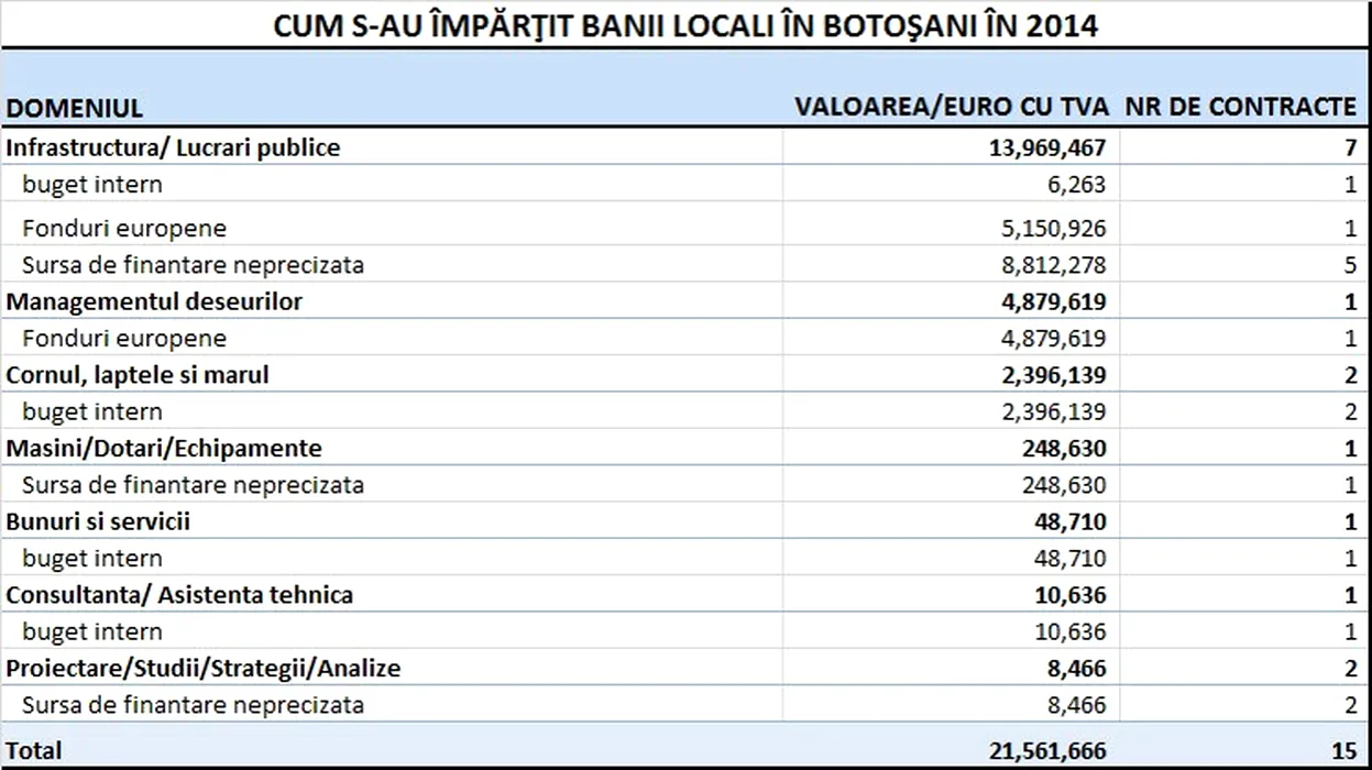BOTOȘANI. Unde au mers banii publici în 2014. Topul firmelor care au contracte locale cu statul