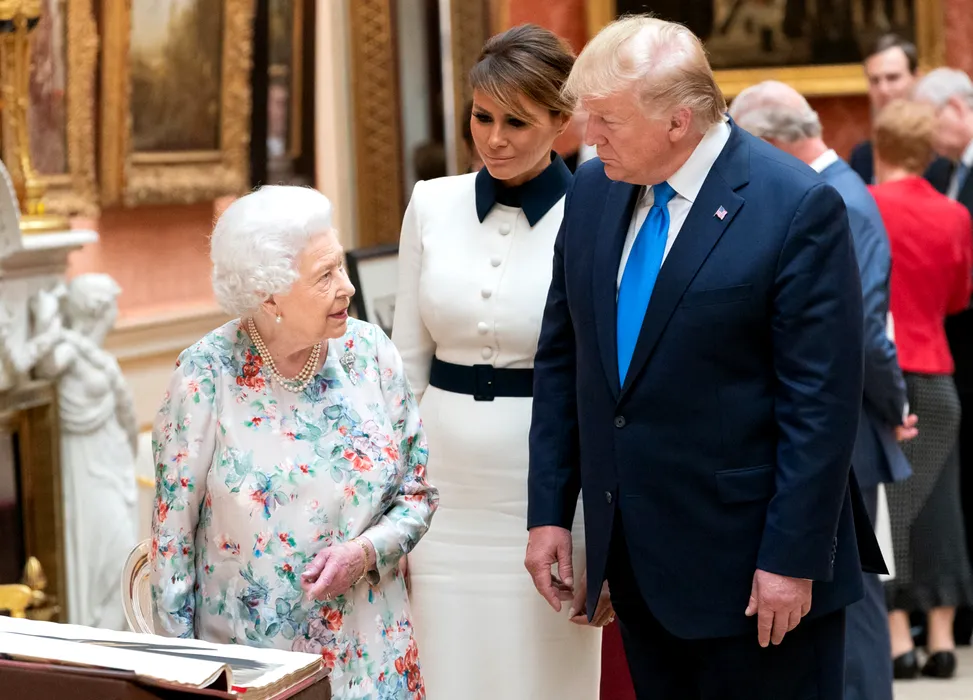 Le président Donald J. Trump et la premičre dame Melania Trump examinent des articles de la collection royale avec la reine Elisabeth II d’Angleterre, dans la galerie de peintures du palais de Buckingham ŕ Londres le lundi 3 juin 2019 President Donald J. Trump and First Lady Melania Trump review items from the Royal Collection with Britain&x2019;s Queen Elizabeth II Monday, June 3, 2019, in the Picture Gallery at Buckingham Palace in London.,Image: 443866109, License: Rights-managed, Restrictions: , Model Release: no, Credit line: Profimedia