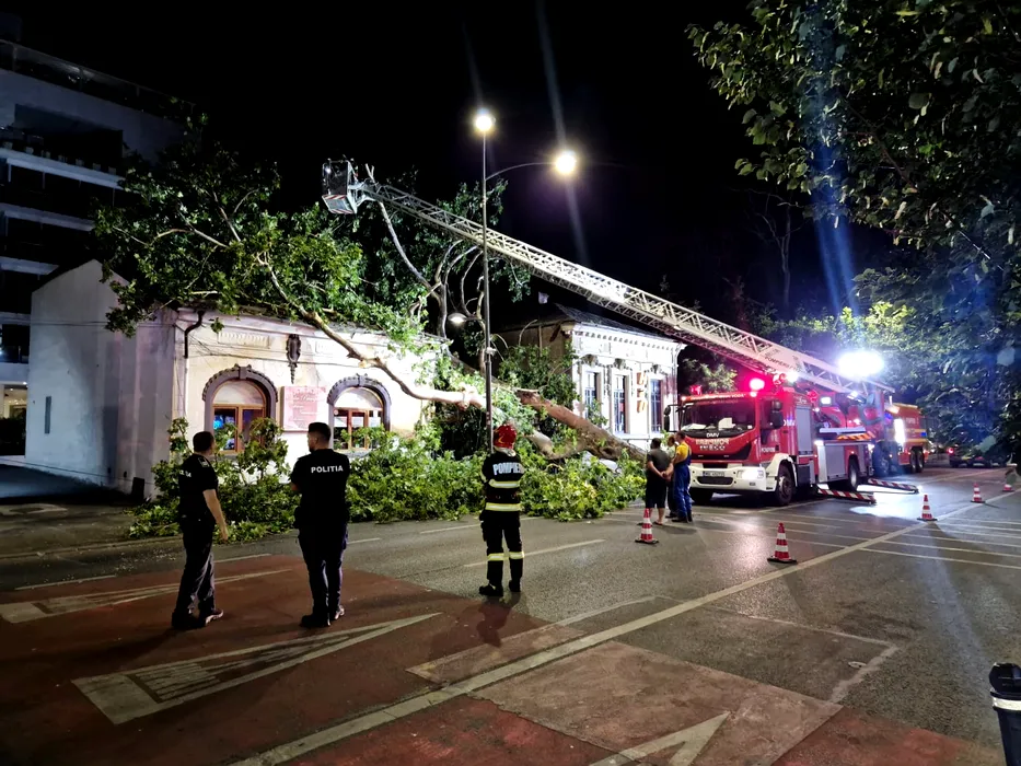 Incident în Capitală: Un arbore a CĂZUT peste o cofetărie situată pe Strada Dorobanți
