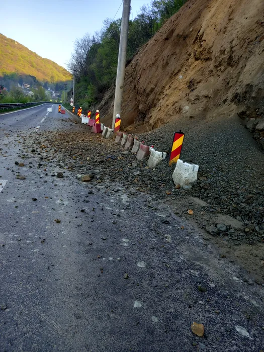 VIDEO. Circulație închisă din nou pe centura orașului Călimănești, județul Vâlcea, din cauza căderilor de pietre