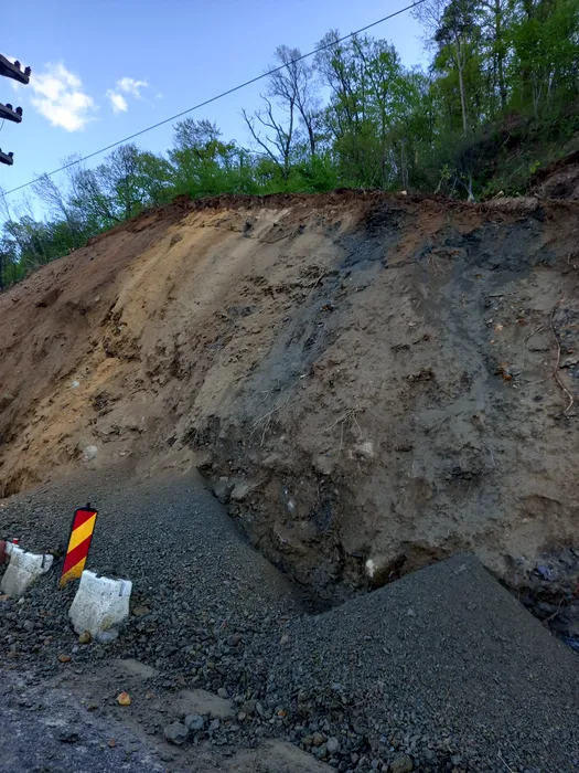 VIDEO. Circulație închisă din nou pe centura orașului Călimănești, județul Vâlcea, din cauza căderilor de pietre