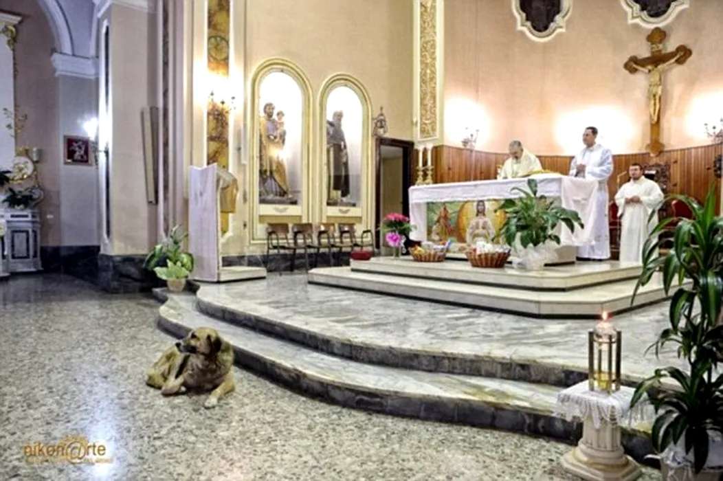 Câinele care merge săptămânal la biserica în care s-au ținut funeraliile stăpânei