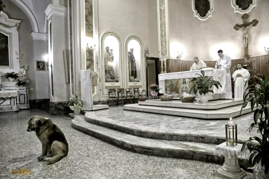Câinele care merge săptămânal la biserica în care s-au ținut funeraliile stăpânei