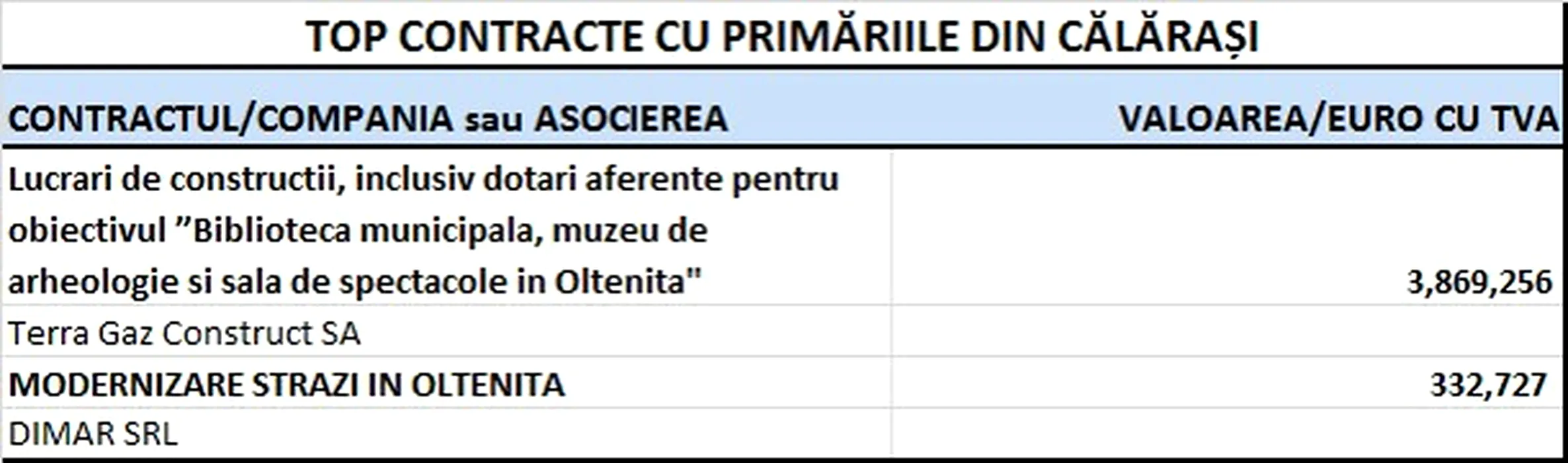 CĂLĂRAȘI. Unde au mers banii publici în 2014. Topul firmelor care au contracte locale cu statul