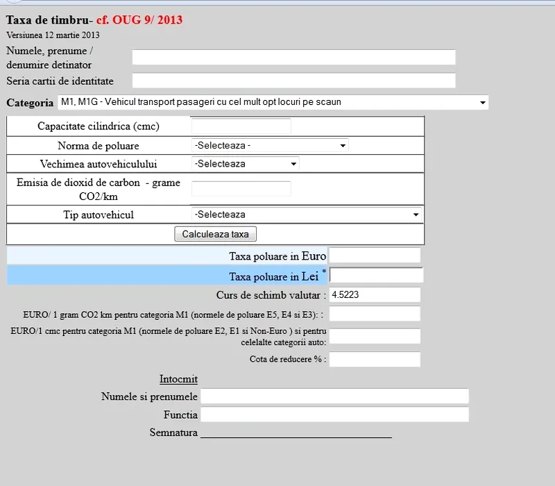 Calculator pentru TIMBRUL DE MEDIU. Cât plătesc de astăzi șoferii pentru înmatricularea mașinilor