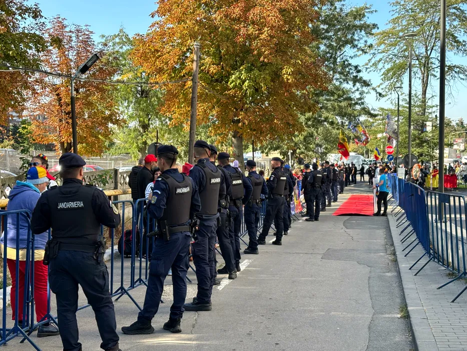 GALERIE FOTO: Călin Georgescu la control judiciar, pe covorul roșu. Un susținător este cercetat că a arborat un steag cu însemnele Mișcării Legionare