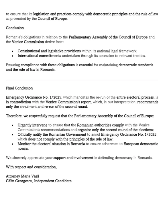 Călin Georgescu a transmis mesaj către președintele Adunării Parlamentare a Consiliului Europei: „Să fim în primul rând drepți, corecți și pro-români”
