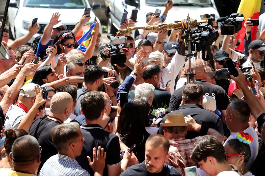 Călin Georgescu, ÎNTÂMPINAT de zeci de susținători la IPJ Ilfov: „România este astăzi condusă de patrocrație”