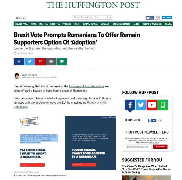 Campania Gândul „Romanians adopt Remainians” a ajuns în presa din Marea Britanie