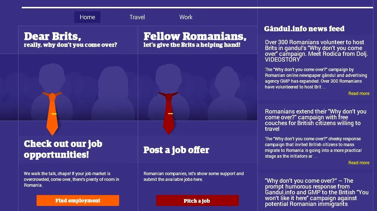 Campania „Why don’t you come over?” continuă. Din această seară le oferim britanicilor și slujbe în România