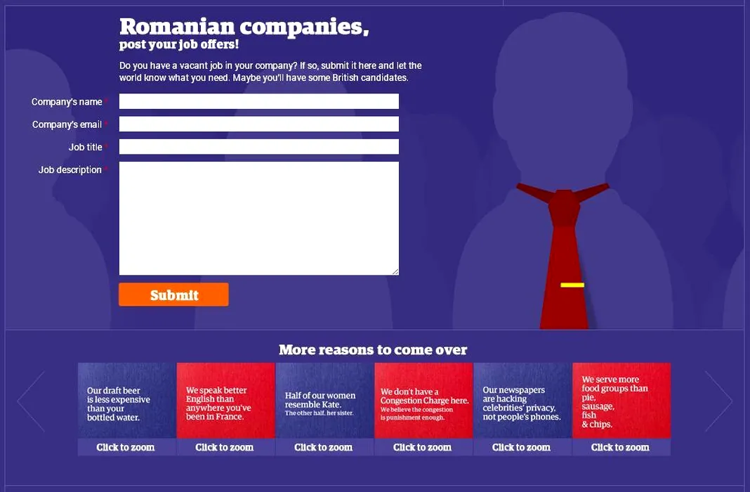 Campania „Why don’t you come over?” continuă. Din această seară le oferim britanicilor și slujbe în România