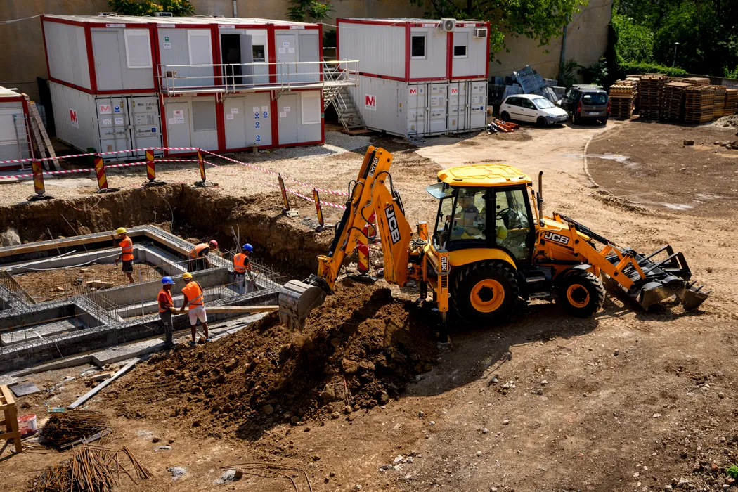 Muncitori lucreaza pe santierul noului corp de cladire de la Institutul Marius Nasta (fostul spital Zerlendi), in Bucuresti, sambata, 28 iunie 2025. ANDREEA ALEXANDRU / MEDIAFAX FOTO