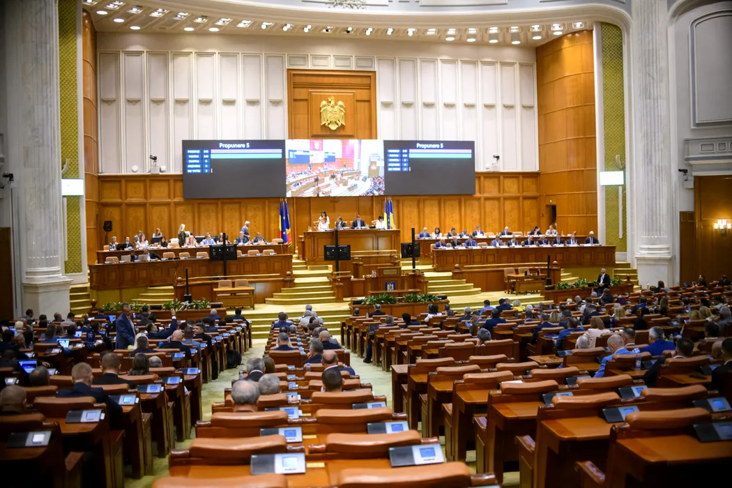 Sedinta comuna a Senatului si Camerei Deputatilor, desfasurata duminica, 7 septembrie 2025, la Palatul Parlamentului din Bucuresti, pentru dezbaterea si votul celor patru motiuni de cenzura depuse de AUR, S.O.S. Romania si POT, ca urmare a angajarii raspunderii Guvernului pe cinci proiecte de lege incluse in pachetul doi de reforma. ALEXANDRU DOBRE / MEDIAFAX FOTO